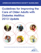 The American Geriatrics Society (AGS) has just released newly revised and updated guidelines for the treatment of diabetes, Improving the Care of Older Adults with Diabetes Mellitus: 2013 Update. The 2013 guidelines incorporate new high-quality evidence that has become available since the 2003 AGS/California Health Care Foundation diabetes guidelines were published. The new guidelines emphasize the importance of individualizing and prioritizing treatment, with attention to quality of life and personal and caregiver choices related to health care.